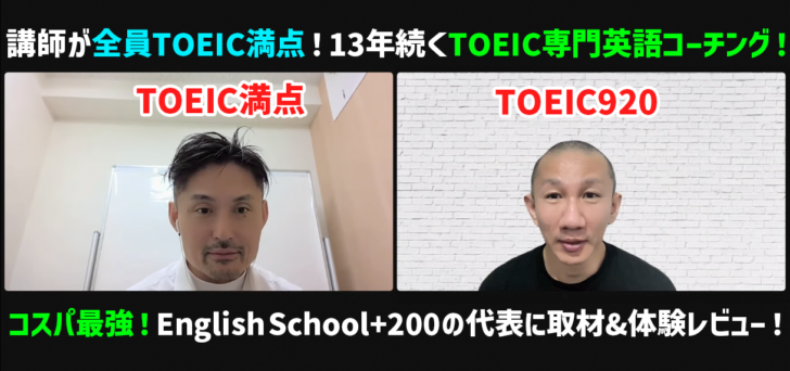 English School +200は、TOEIC専門のスクールで、講師が全員TOEIC満点というのが特徴です。校舎は1つしかないですが、オンラインでも受講が可能。