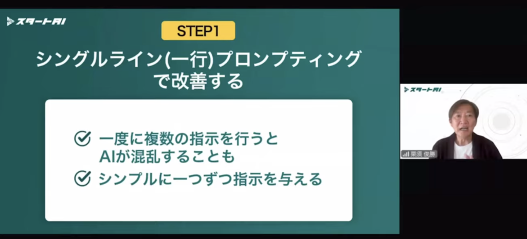 特に、栗須氏が提唱する「シングルライン(一行)プロンプティング」は、目から鱗でした。 「AIへの指示は、部下へのメールと同じ。一行の日本語でいい」という指導法は、私たちのような40代以上のアナログ世代にとって、唯一無二の救世主です。逆に言えば、バリバリのエンジニアを目指す若者には物足りない内容かもしれません。