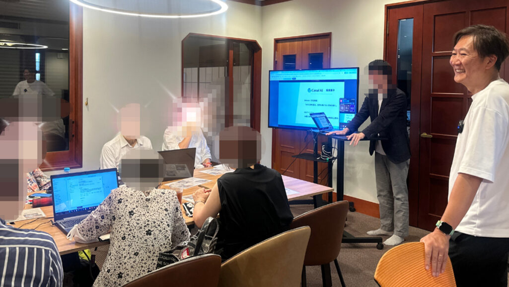 その後も、参加者と車座になってお弁当を囲みながら、「孫と一緒に使えるAIを作りたい」「経理を自動化したい」といった受講生の相談に、同じ目線で熱心に耳を傾けていました。