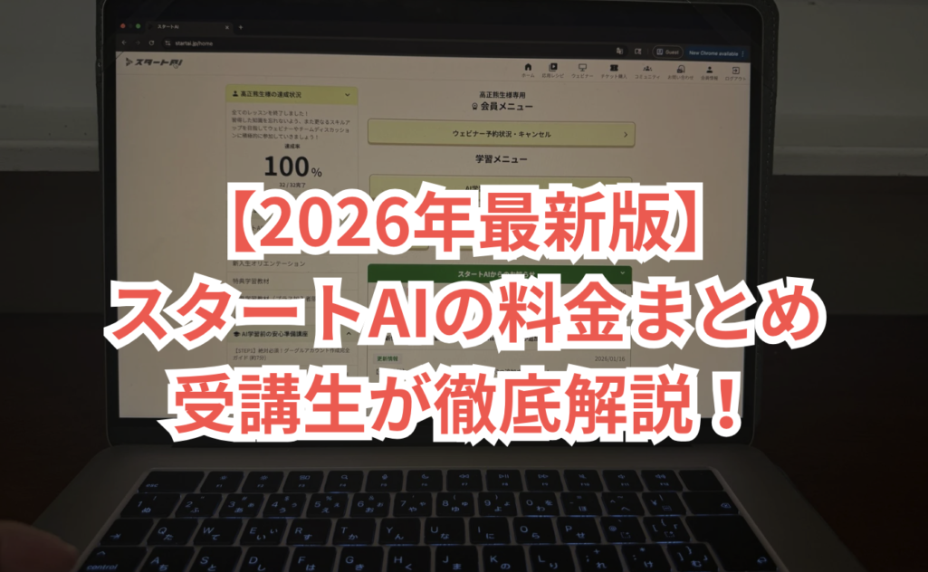 AI初心者が基礎から応用まで体系的に学びたいなら、スタートAIは現時点で最もコスパが高い選択肢です。