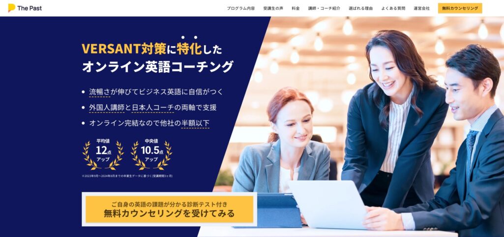 The Pastは3ヶ月で平均12点のVERSANTスコアアップを実現している英語コーチングサービスで、VERSANTのスコアの伸びは業界No.1の実績があります。