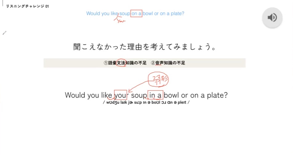 このように「なぜ聞き取れないのか」を論理的にくわしく解説してもらったので、自分の課題が何なのかよく理解できました。