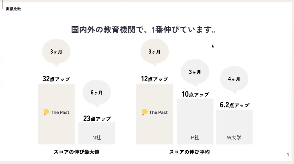 The Pastの最大のメリットは、何といっても圧倒的なスコア向上実績です。